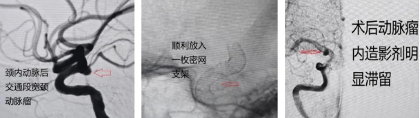 密网支架栓塞右侧颈内动脉后交通段宽颈动脉瘤