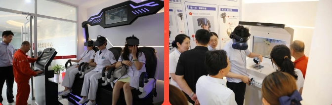 活动伊始,在大唐黄岛发电公司党委书记、董事长、总经理徐美召的陪同下,医院党委书记周雷升带领医护专家团队,实地参观了VR安全培训基地。借助前沿VR技术,大家身临其境地体验了各类安全场景。逼真的画面与震撼音效,使每一位参观者深刻认识到安全生产的极端重要性,切实提升了安全防范意识和应急能力。