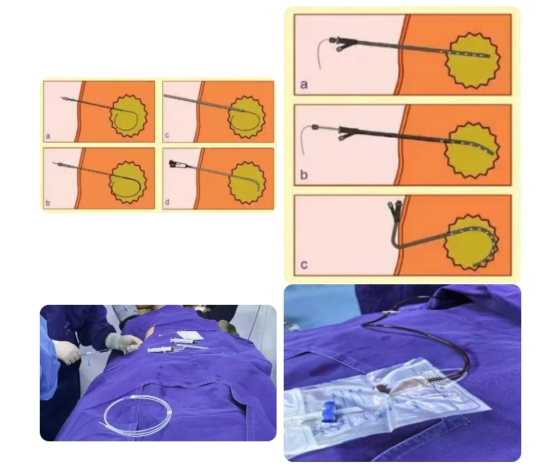 在CT精准定位下,将纤细引流管置入积液、积脓或梗阻部位(如胸腔积液、腹腔脓肿、胆道梗阻)。
