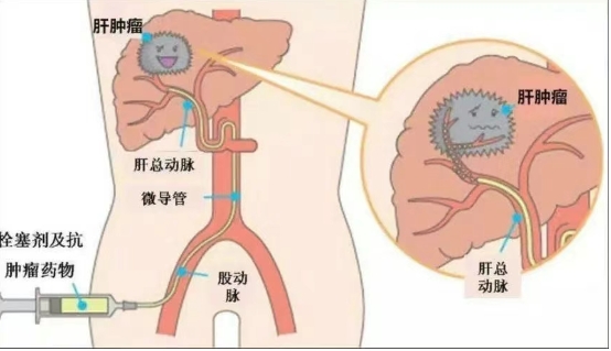 1、栓塞术:注入栓塞颗粒,"堵死"肿瘤血管,切断其营养供应,"饿死"肿瘤。