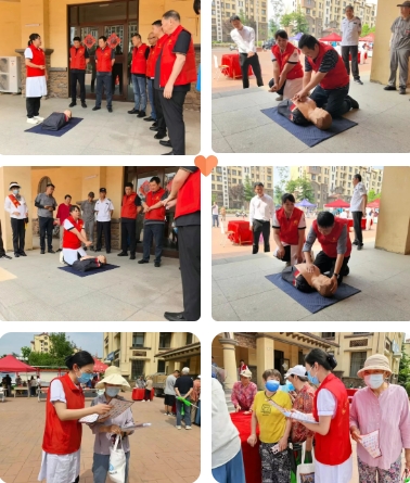 志愿服务队为居民提供免费义诊、血压测量、用药指导、心肺复苏急救培训等专业服务,并现场赠送中医院特色中医养生茶饮,莲子心志愿服务队队长殷雪华进行心肺复苏培训,让居民在“家门口”体验到省级优质医疗资源与传统养生文化的双重滋养。