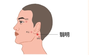 (3)翳明穴:位于颈部,耳垂后方,乳突下端前方凹陷中的翳风穴向后1寸。