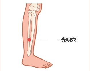 (4)光明穴:位于小腿外侧,外踝尖上5寸,腓骨前缘。