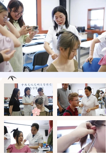 刮痧板刮出“星空瘀斑”引得国际学生拍照研究,耳穴压豆的触感和艾灸的温热让大家直呼神奇。泰国学生王利体验了刮痧,“上周胃不舒服,正好今天体验了中医特色疗法后感觉很好,并且还解读了我的性格,感觉很棒。”