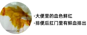 4.肛裂:出血方式为粪便表面一侧附有血迹,不与粪便相混,不含有黏液,部分患者便后滴血。出血量少,便后疼痛剧烈,时间可持续半小时至数小时。