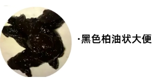 又称为柏油便,大便呈黑色或棕黑色。为上消化道出血最常见的症状之一。如果出血量较少,且出血速度较慢,血液在肠内停留时间较长,排出的粪便即为黑色;若出血量较多,在肠内停留时间较短,则排出的血液呈暗红色;出血量特别大,而且很快排出时也可呈鲜红色。