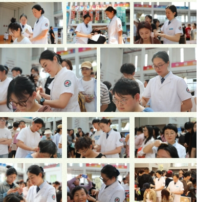 中医护理专家根据小满气候特点,为师生选择合适的中医特色疗法,如耳穴压豆、刮痧、棍针、拔罐、艾灸等技术为市民带来优质中医疗法体验。
