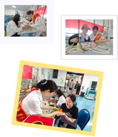 在“妈妈包诞生记”工作坊中,医护人员指导宝妈们将自己的小巧思融入实用育儿包,每个装饰都承载着对宝宝的期待和爱,使手工制作过程成为沉浸式体验。