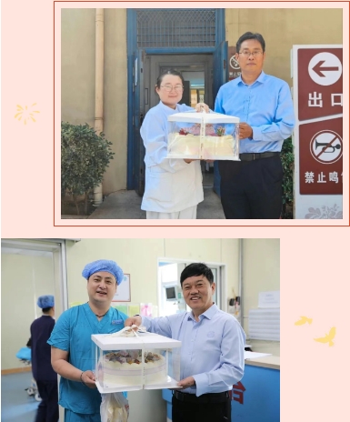 叮咚,护士节限定美食已送达!院领导们化身“最强外卖天团”,带着定制蛋糕“横扫”全院科室!蛋糕不仅造型精致,更暗含中医药文化巧思,寓意着“健康守护”。
