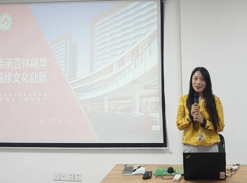 宣传科主任逄世丽以《传承杏林精华 创新中医文化》为主题,为实习生们介绍了医院的文化建设成果。她从中医文化的起源讲起,阐述了大医精诚、医者仁心等中医核心理念的内涵,介绍了医院在中医文化传承与创新方面的举措。