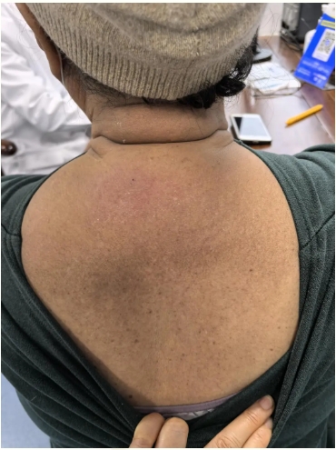 “这不是黑棘皮病,是糖尿病性硬肿症,这是代谢异常与微循环障碍交织的‘顽疾’,单纯控糖难以奏效,必须从‘化痰瘀、通经络、养阴津’三路并进。”魏教授解释道。他现场开具个性化中药方剂,以炒薏苡仁、当归、桃仁、浙贝母等药物为核心,并叮嘱患者配合饮食调摄与穴位按摩。