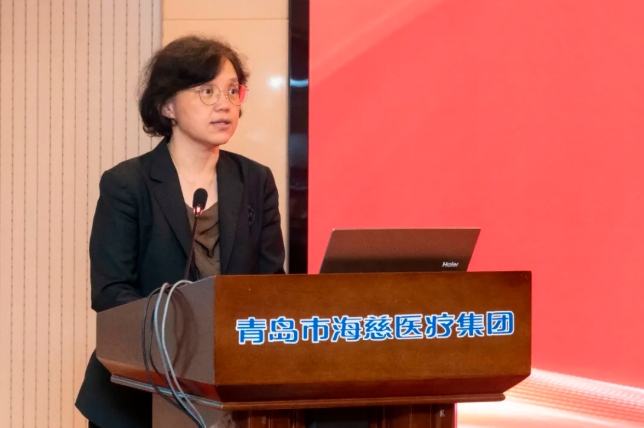 特聘专家代表于常红教授发言,感谢医院的信任与厚爱。感谢各位同事的支持与帮助,作为医院高质量发展新征程上的一名“新兵”,努力做到三个“始终如一”:一是始终以“学者本色”深耕专业,做医院学科建设的助推者。二是始终以“医者初心”服务患者,做医疗质量的守护者。三是始终以“家人情怀融入团队”,做医院发展的同行者。