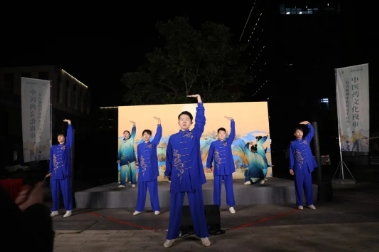 新区中医医院医护人员为市民现场进行八段锦、五禽戏等中医运动项目教学,星空下练出好体魄。