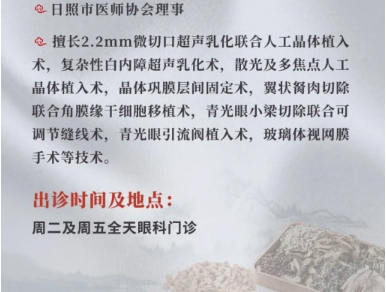 为帮患者把握黄金治疗期,青岛西海岸新区中医医院眼科开展白内障手术关爱活动。眼科申加华主任采用全国领先的2.2mm微切口白内障超声乳化联合人工晶体植入术,根据患者情况选配多焦点人工晶体及散光人工晶体精准矫正视力,不仅能有效治疗白内障,更能同步解决散光、近视、老花等问题,让您术后拥有清晰、舒适的视觉体验。