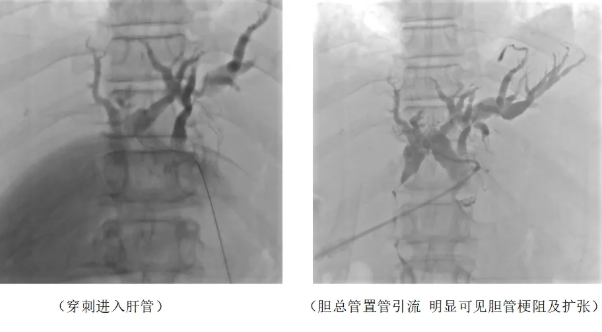 第一期手术,专家团队采用经皮肝穿刺胆管引流术(PTCD),先为患者引流减压。手术开始,在DSA的精准引导下,成功穿刺扩张的肝内胆管。这一步骤必须精准无误,稍有偏差就可能损伤周围重要组织。成功穿刺后,团队熟练地置入引流管,这根引流管就像为堵塞的河道开辟的新泄洪通道。随着手术完成,淤积的胆汁顺着引流管顺利引出体外。神奇的是,术后仅 24 小时,患者的黄疸症状便开始缓解,原本蜡黄的皮肤渐渐恢复色泽,肝功能指标也开始趋于稳定,这为后续治疗赢得了宝贵时间。