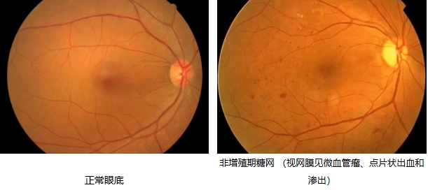 早期糖网为非增殖性,病变一般由视网膜中周部开始,视网膜出现微血管瘤、渗出,此时对视力没有明显影响,患者通常不会有任何察觉,一般都是在体检时发现。
