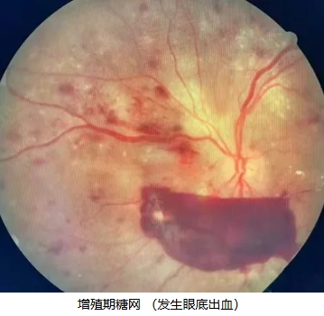 当病情发展到增殖期时,视网膜发生缺血缺氧性改变刺激新生血管的生长,当新生血管长入玻璃体时,即可引起玻璃体积血。如果出血量少时患者自觉眼前有漂浮物,如果大量出血患者视力将急剧下降,一旦出现牵拉性视网膜脱离视力将明显下降甚至完全失明。