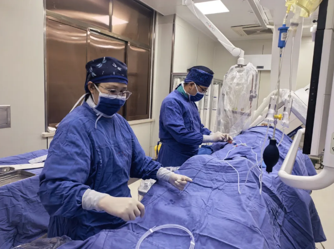 5月2日,患者王先生突发意识不清伴有左侧肢体无力,家属紧急将其送至医院急诊科。经头颅CT检查排除脑出血,考虑为急性脑梗死。神经内科马博医师立即给予替奈普酶静脉溶栓治疗。紧急溶栓后,患者意识部分恢复,但仍存在言语不清等症状,可能存在大血管病变,在取得家属同意后,立即联系值班医生刘彦伟副主任医师为患者开展神经介入治疗。脑血管造影术中发现,王先生的右侧颈内动脉闭塞合并左侧颈内动脉重度狭窄,右侧颈内动脉为责任血管。刘彦伟副主任医师和马博医师在静脉镇静、局部麻醉下为患者实施右侧颈内动脉取栓及支架植入,远端血管显影良好。患者术后1天便转回普通病房,目前仅有轻度构音障碍,肢体功能恢复良好。