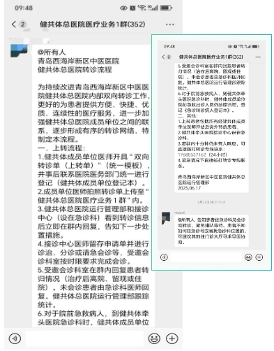 青岛西海岸新区中医医院健共体总医院牵头医院高度重视紧密型县域医联体建设工作,不断梳理、优化健共体转诊流程,致力于促进卫生资源合理应用、提升基层医疗服务能力,不断提升基层患者上下转诊医疗保障水平和综合服务能力,让百姓便捷享受到同质化医疗服务,推动优质医疗资源均衡布局。医院持续提升服务质量与技术水平,为百姓生命健康开通绿色通道,切实提升群众就医满意度,为健康新区建设保驾护航。