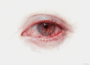 检查可见眼睛严重充血,原本透明的角膜变得像毛玻璃一样水肿,瞳孔对光线反应迟钝,这些都是眼内高压和炎症的紧急信号。