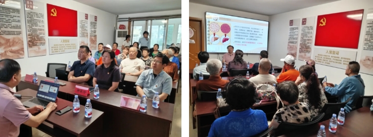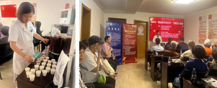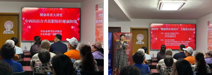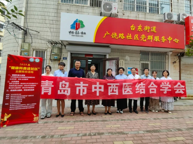 为庆祝中国共产党建党104周年和纪念中国人民抗日战争暨世界反法西斯战争胜利80周年,6月26日下午,由青岛市中西医结合学会、青岛市中医药学会、青岛市药膳研究会与青岛市科学技术协会联合主办、青岛市中医医院、青岛市公共卫生临床中心、青岛市中西医结合学会肝病专业委员会、青岛市中医药学会中药药事专业委员会承办,广饶路社区服务中心协办的“健康科普进社区、党建引领惠民生”主题党日活动成功举办。