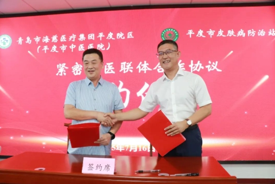7月16日,青岛市海慈医疗集团平度院区(平度市中医医院)与平度市皮肤病防治站开展紧密型医联体合作协议签约仪式在海慈医疗平度院区举行。