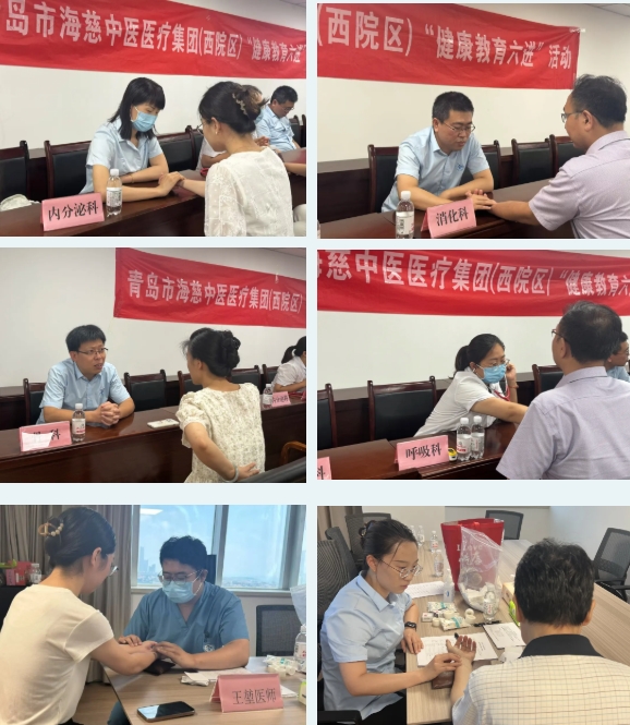 为更好地擦亮文明窗口,展示行业形象,推进中医生活化,推动中医“看得见、摸得着、用得上”,让中医文化真正融入群众生活,7月25日,青岛市海慈中医医疗集团西院区(山东青岛中西医结合医院、青岛市第五人民医院)“中医生活化”健康公益活动第九站走进青岛市市南区人民政府。