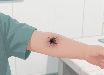 焦痂与溃疡:被感染的恙螨叮咬处通常会出现一个黑色的焦痂,这是恙虫病的特征性症状,对临床诊断最具有意义,可见于70%以上的患者。