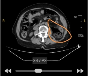 经腹部CT检查提示肠梗阻,外一科韩传学主任会诊后考虑为急性肠梗阻、结肠坏死,不能完全排除肠穿孔可能,已具备急诊手术探查指征!但老人年龄已94岁,身体各器官功能不全,尤其是心肺功能和肾功能均存在不同程度衰竭表现,保守治疗的结局最终是失去生命,手术是唯一的希望!与家属沟通后,家属与医师统一战线,毅然选择背水一战!