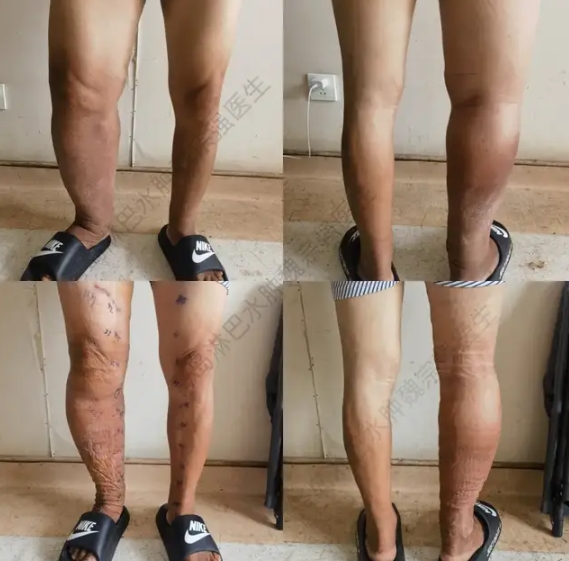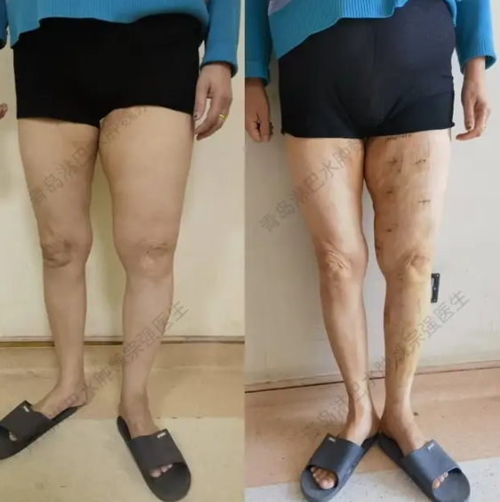 妇科恶性肿瘤根治术后下肢淋巴水肿治疗前后对比