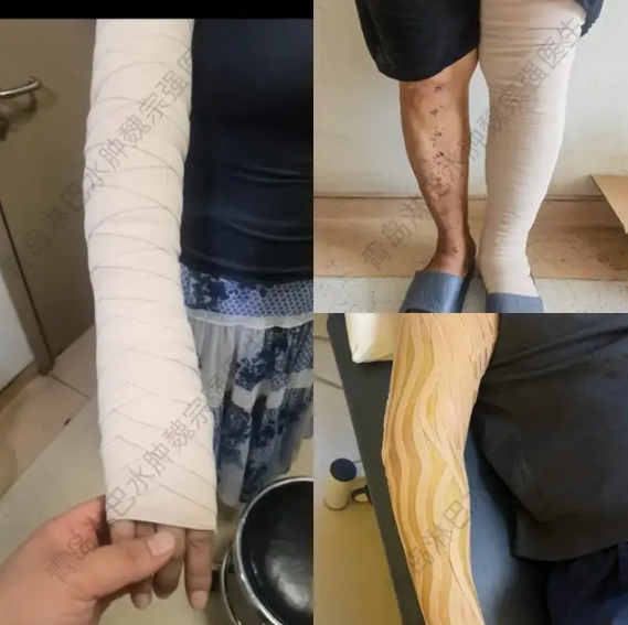 低拉伸弹力绷带加压和肌内效贴改善淋巴回流