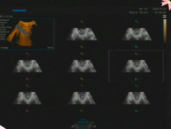 经检查,刘女士膀胱膨出(GreenII型),子宫脱垂,肛提肌裂孔面积增大,根据诊断结果开展盆底康复治疗。