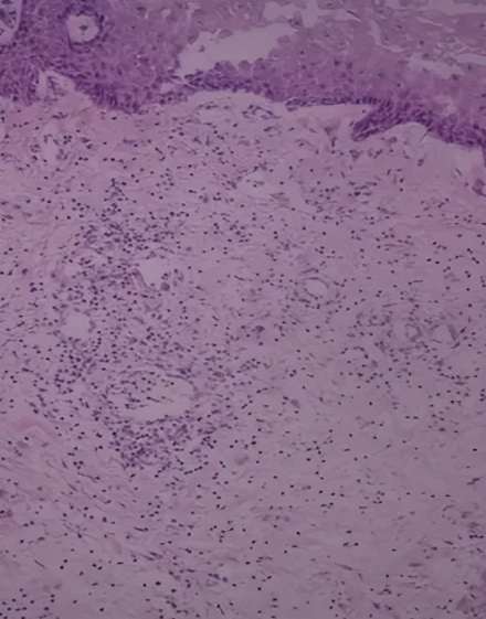 涂平教授一边安抚患者,一边检查患处。对患者的病理切片和医生们放在显微镜下仔查“镜下见溃疡区部分血管壁坏死,大量中性粒细胞浸润、少许淋巴细胞浸润。该病理切片考虑坏疽性脓皮病。”
