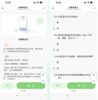 新区中医医院中医专家凭借丰富临床经,开具12款中药特饮方,精准调理现代人常见亚健康问题,首批上线加味乌梅汤、消暑降温方两款中药特饮,只需动动手指通过手机即可将专家调配的中药特饮直邮到家。