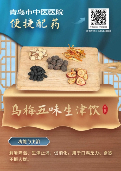 医院推出的乌梅汤Plus版——乌梅五味生津饮,富含的酸性物质还可以促进唾液腺与胃液腺的分泌,生津止渴,出外游玩时也能避免晕车,适用于口渴乏力、食欲不振的人群。
