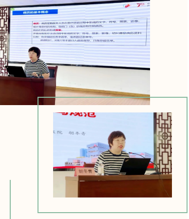 胡冬青副主任医师结合实例,从病历书写基本要求、门(急)诊与住院病历规范、知情同意书及病案首页填写五大板块展开讲解,强调病历在医疗、法律等方面的重要价值,系统阐述了纸质与电子病历的概念与分类,并从六个维度全面分析了病历的功能与书写意义。讲座中,她详细解读各类病历书写要求与格式,提供知情同意实务“避坑指南”,并重点讲解了病案首页填写规范及相关填写要点,内容涵盖医保、评审及数据应用,引起学员广泛关注。