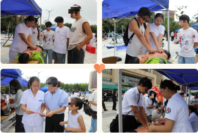 高校场所人流密集,人员集中,为强化在校师生的应急医疗意识和应急救助能力,在危急关头争取宝贵的时间窗,护理人员在学校迎新处开展了心肺复苏教学,细致拆解每个步骤的操作要点,进行了详细的指导教学。