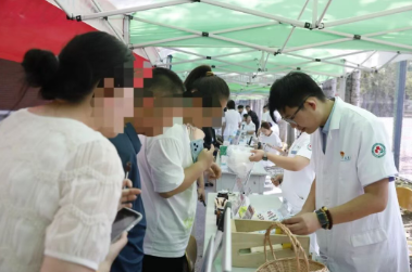 活动现场,教职工在医护人员的指导下体验中医药传统手作亲手制作艾条,现场品尝了膏方、中药棒棒糖,在药师的讲解下了解了中药药材及特色制剂,将中医生活化和趣味性融入体验。