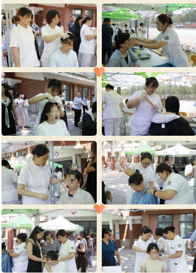 护理人员为教职工进行了中医适宜技术及传统养生技法展示,让大家零距离体验了耳穴压豆、刮痧、棍针、拔罐、艾灸等中医特色疗法,感知中医药文化的博大精深。