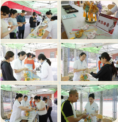 活动过程中,教职工根据个人体质及需求现场制作温中健脾袋,疏肝解郁袋等中药香囊挂于身旁,可起到相应保健作用。