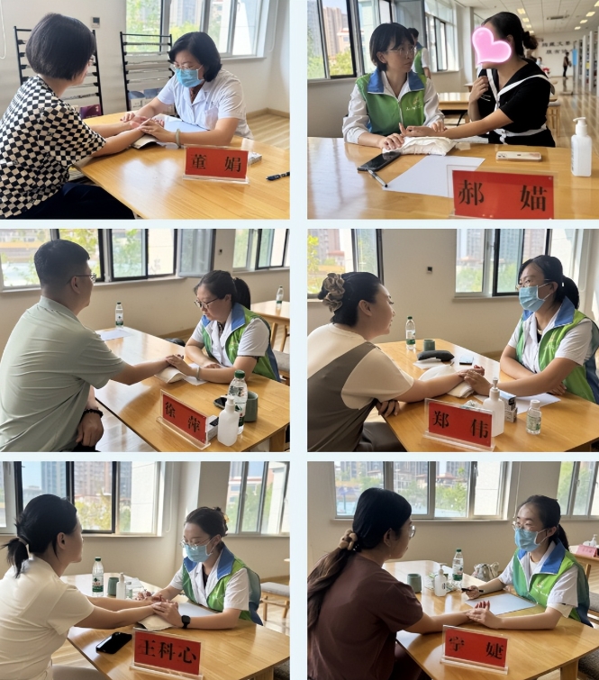 本次义诊专家涵盖广,由医院治未病科主任董娟、神经内科副主任郝媌、针推康复一科主任助理徐萍、妇科主任助理郑伟、治未病科住院医师王科心、妇科住院医师宁婕、针推康复一科治疗师袁伦,针推康复一科护士长王艳,神经内科、内分泌科、皮肤科病区护士长尚蕾洁等组成专家团队,他们的到来,为全校教师带来了一场别开生面的中医健康关怀体验。