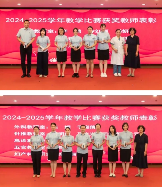 随后,大会进行2024-2025学年教学比赛获奖教师表彰。医院对在教学比赛中表现突出的14名教师予以表彰。现场掌声雷动,既是对获奖教师教学能力的充分肯定,也传递出全体师生对医学教育事业的热忱。