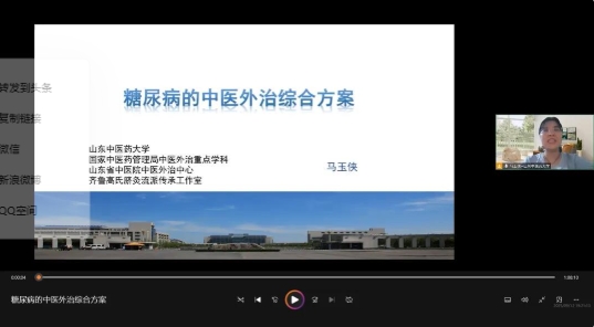 山东中医药大学的马玉侠教授线上分享了《糖尿病的中医外治综合方案》,系统介绍了外治技术在慢病管理中的系统应用。