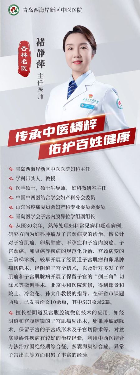 李萱,主治医师,山东中医药大学中医妇科学硕士研究生,于山东省千佛山医院妇科进修腔镜。现担任山东中医药学会中医适宜技术委员。山东省青年医务工作者协会母胎医学分会委员。青岛市中西医结合学会妇科微创专业委员会委员。山东中西医结合学会第二届妇科微创专业委员。主编论著、论文数篇。另任滨州医学院教学基地聘任教师。