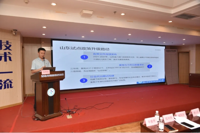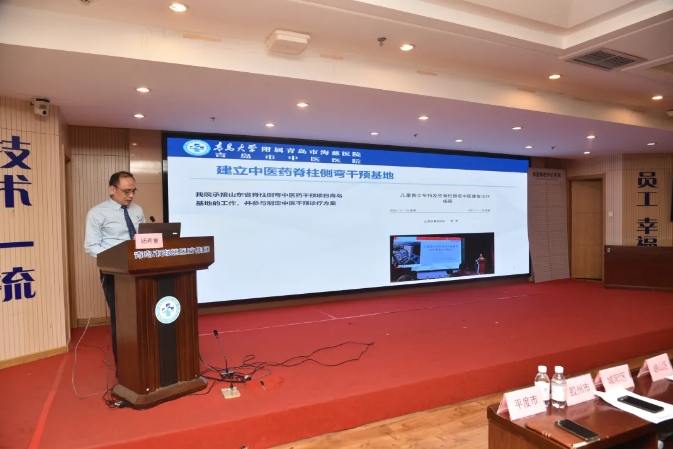 崂山区卫健局中医科负责人介绍本区脊柱侧弯干预工作的成果及经验。