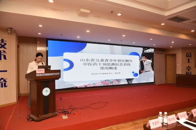 城阳区卫健局中医科负责人介绍本区脊柱侧弯干预工作的成果及经验。