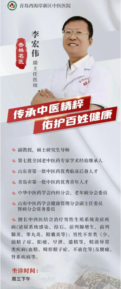 为满足广大男性患者就医需求,提供便捷、优质的医疗服务,青岛西海岸新区中医医院开设生殖医学科中医男科门诊。生殖医学科医护人员采用中西医结合的治疗方式,将现代技术与祖国传统医学有机结合,治疗前列腺炎,前列腺增生,少、弱、畸形精子症,勃起功能障碍,早泄,睾丸炎,附睾炎,精囊炎及性传播疾病等男科常见疾病,尤以治疗慢性前列腺炎,前列腺增生,男性不育症,男性性功能障碍为特长,为广大男性患者结合中医辨证,给予个体化的治疗方案。