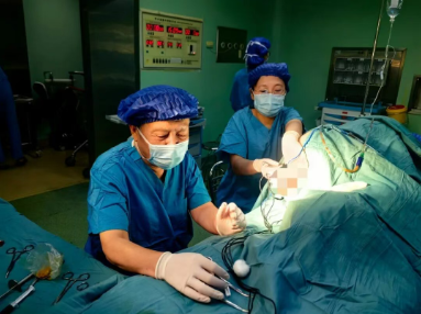 随后的手术演示环节,李东冰教授连续演示6例混合痔微创手术。主要采用他首创并不断优化的“铜离子电化学疗法+闭合式痔切除术+肛周封闭注射”方案,切除并缝合外痔部分,直视下导入铜离子电极,精准作用于内痔部分——电化学效应使血管内膜纤维化闭合,同时保留黏膜弹性,整个操作出血量不足5毫升,将创伤做到最小,而封闭注射的长效镇痛效果可持续数日。六台手术一气呵成,现场医师近距离观摩学习,受益匪浅。