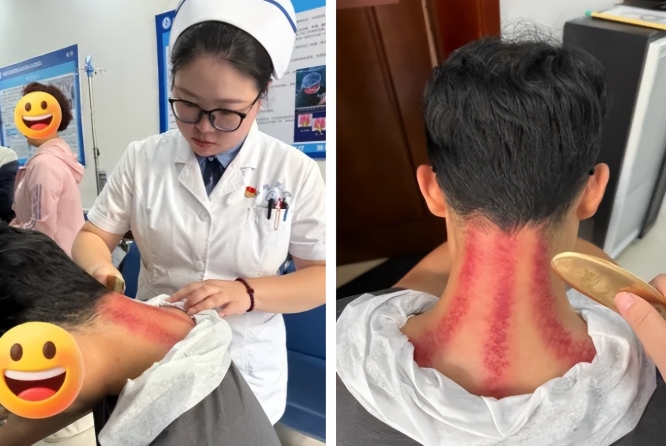 刮痧:大椎穴区域重刮,开通腠理,祛除表层寒湿,改善微循环促使邪气外透。