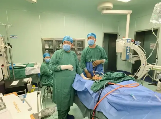 运动医学专家团队张金锋副主任医师、吴滨滨副主任医师决定为患者行关节镜下跟骨骨刺切除+跖底筋膜松解术。术中,在足跟部内侧双通道分别2处长约0.5cm切口,利用关节镜直达病灶,直视下切除跟骨骨刺,松解跟骨结节附着的跖筋膜。手术顺利完成,患者第二天便可下地活动,解决了困扰患者多年的痛苦。